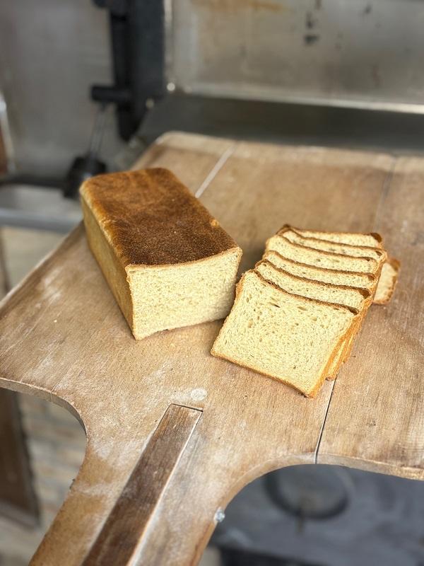Pain de mie fabriqué avec notre farine type80, de la levure, du lait et du beurre.